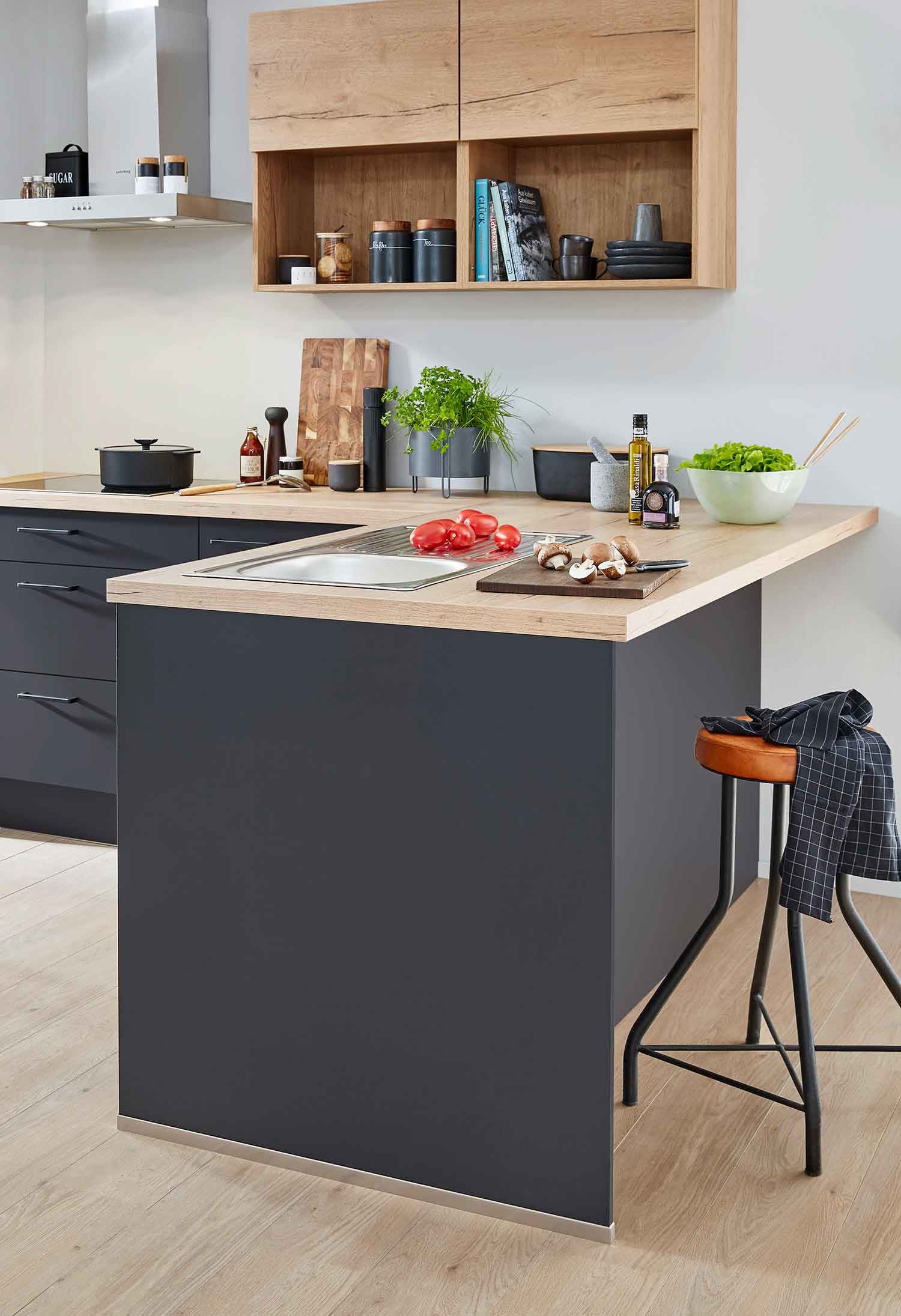 Auch in einer kleinen Küche lässt sich mit cleverer Planung genügend Arbeitsfläche schaffen. Bereits 60 cm bieten eine komfortable Basis, die durch ausziehbare oder klappbare Arbeitsplatten oder Tische flexibel erweitert werden kann. Diese Lösungen lassen sich bei Nichtgebrauch platzsparend verstauen und sorgen so für mehr Bewegungsfreiheit im Alltag.