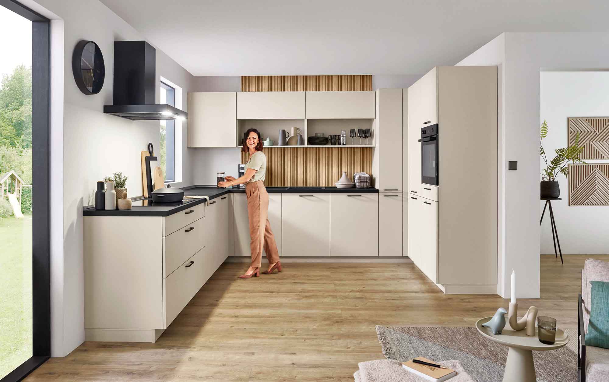 Geeignet ist eine U-Küche vor allem für Familien, Vielkocher, Hobbybäcker oder Küchenliebhaber, die Wert auf effiziente Arbeitsabläufe und kurze Wege legen. Durch die dreiseitige Anordnung entstehen ideale Bedingungen für das sogenannte Arbeitsdreieck zwischen Spüle, Kochfeld und Kühlschrank. Dadurch werden tägliche Abläufe nicht nur komfortabler, sondern auch deutlich zeitsparender – besonders bei gleichzeitiger Nutzung durch mehrere Personen.
